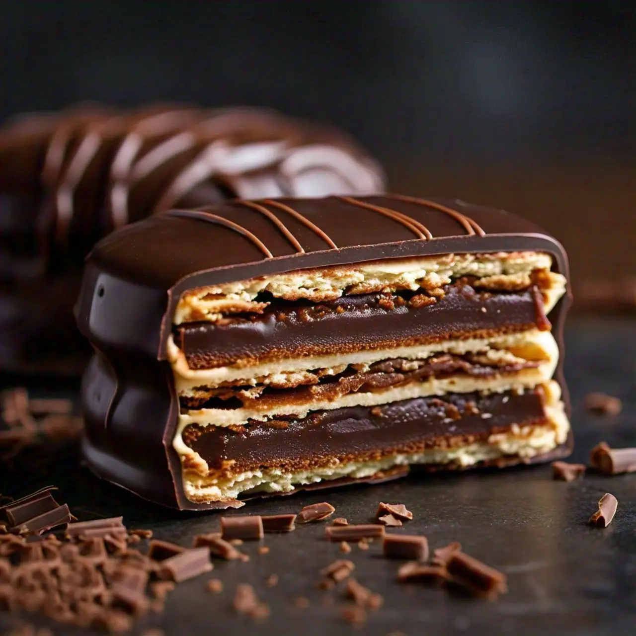 Mini Alfajor El Tobiano relleno con dulce de leche bañado con chocolate, 24 unidades.